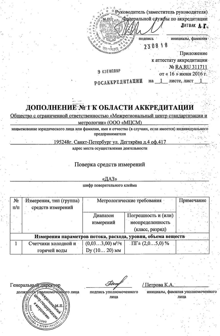 Сведений о компании на официальном сайте немного. Оказывает организациям, жителям г. Санкт-Петербурга услуги в сфере энергосбережения: установка, поверка, метрологический контроль характеристик счетчиков воды бытового назначения (15, 20). Имеется собственная проливочная станция, позволяющая выполнять поверку ИПУ на месте, без демонтажа с трубы. Мастера, диспетчерская служба работают без выходных, время прибытия специалиста согласовывается с клиентом. Аккредитация имеется, действующая, что подтверждается соответствующим документом.
