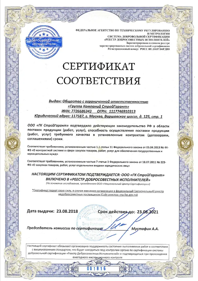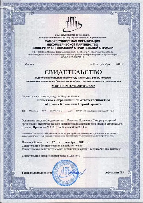 ООО «СтройГарант» на рынке услуг свыше 10 лет, работает по московскому региону и еще в 11 городах Российской Федерации. Соответствующие сертификаты у компании имеются. В подавляющем большинстве отзывы клиентов положительные. Заказчики отмечают профессионализм и тактичность сотрудников, сжатые сроки исполнения заявок с качеством, соответствующим всем стандартам, страховку, письменную гарантию на работу.