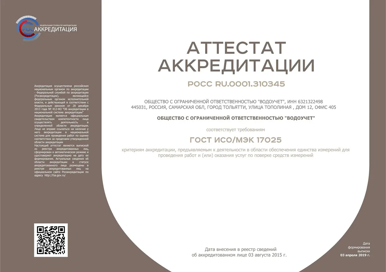 ООО «Водоучет» занимается ИПУ воды в г. Самаре. Право на предоставление услуг по установке, диагностике, поверке счетчиков подтверждается действующим аттестатом аккредитации. По информации с сайта, работа сотрудников жестко контролируется с руководством компании, представителями надзорных структур. В штате – специалисты с многолетним опытом. Оборудование современное, сертифицированное, обеспечивающее точность измерений.